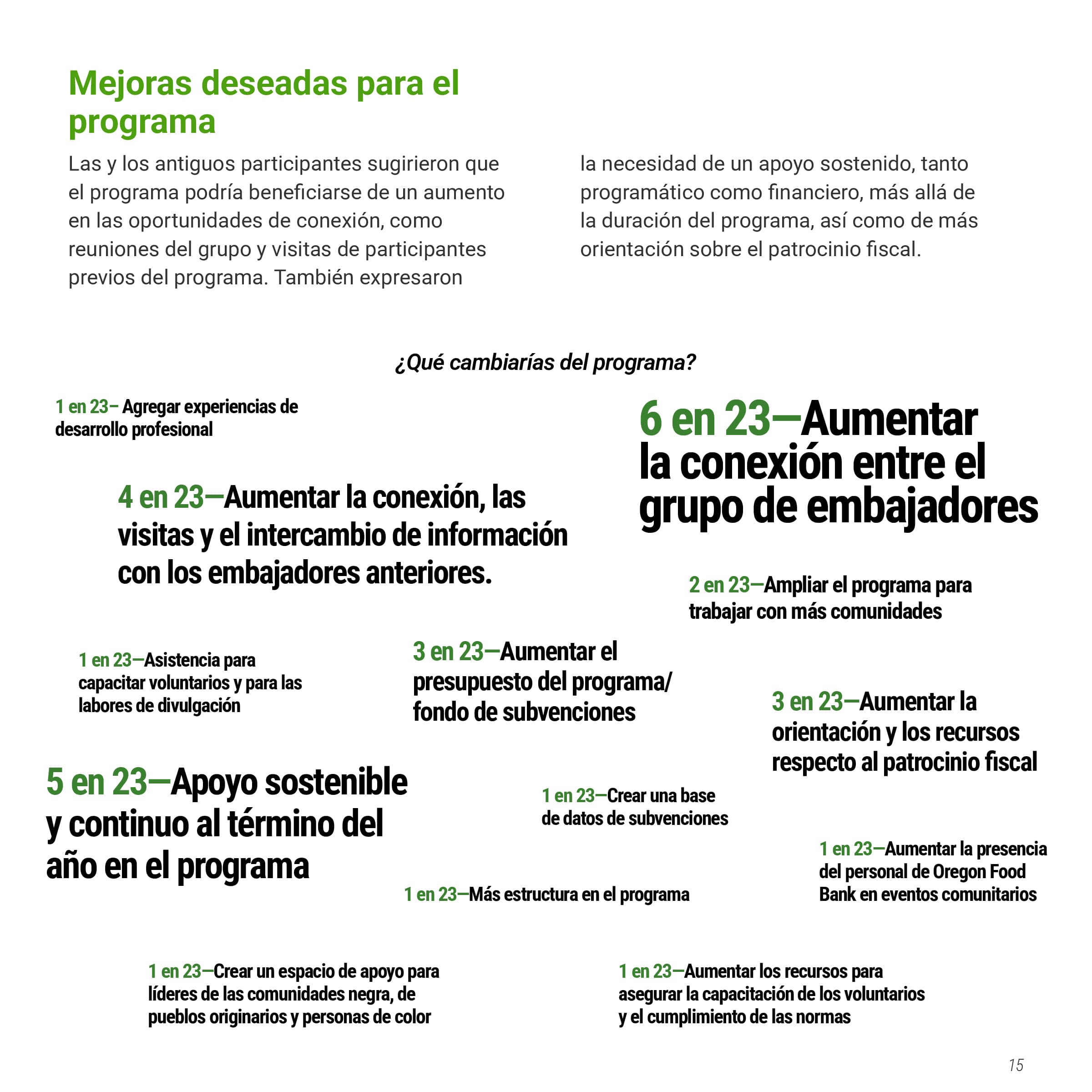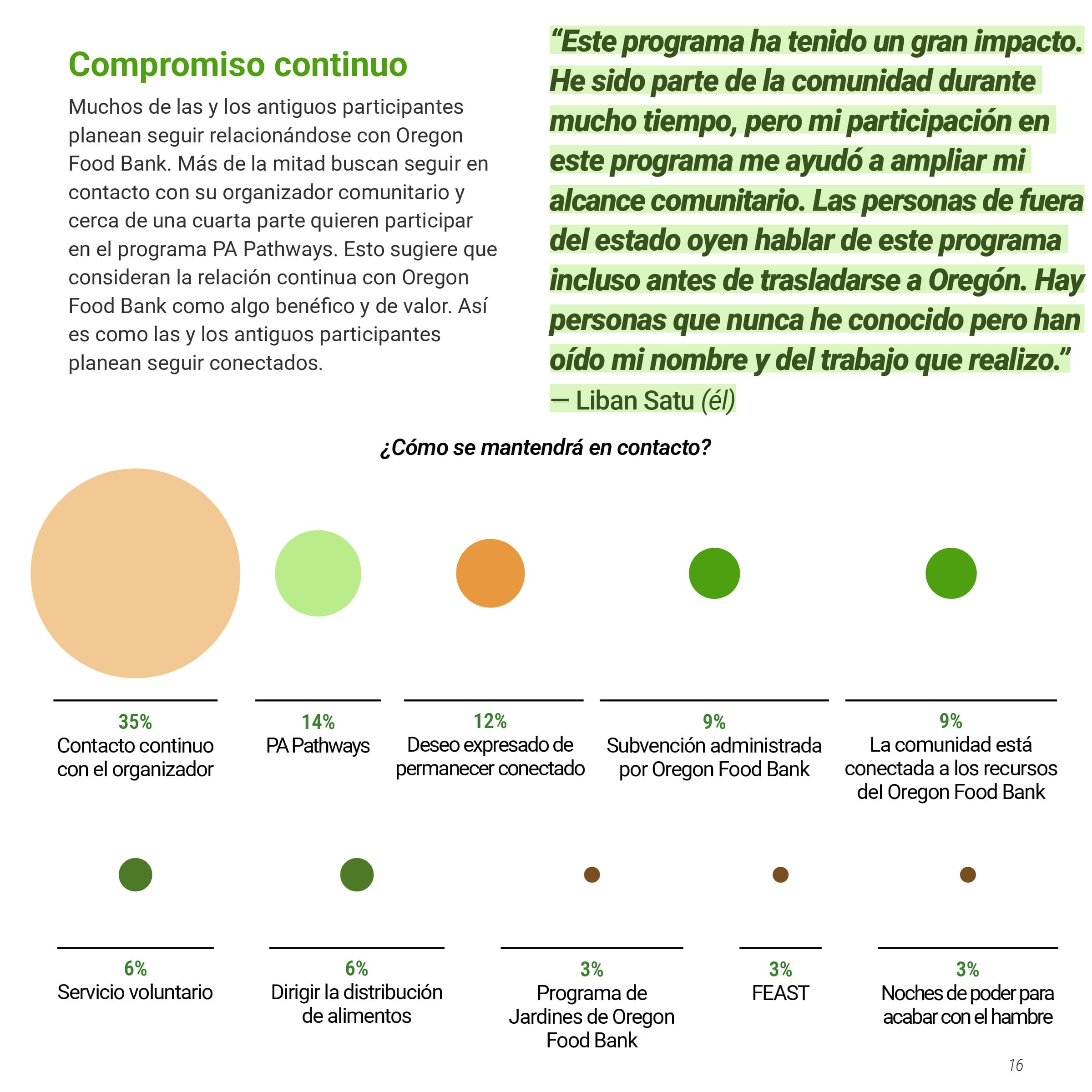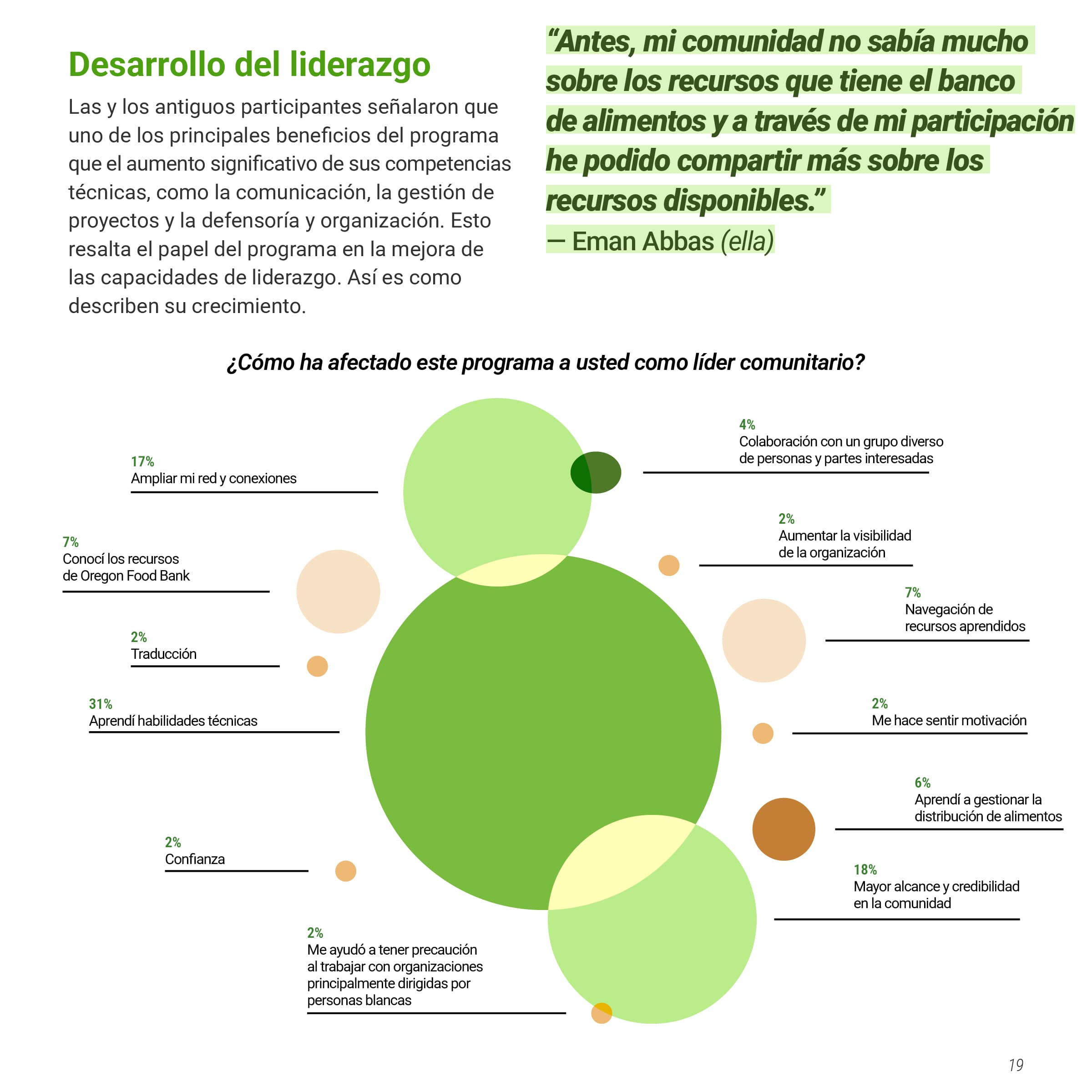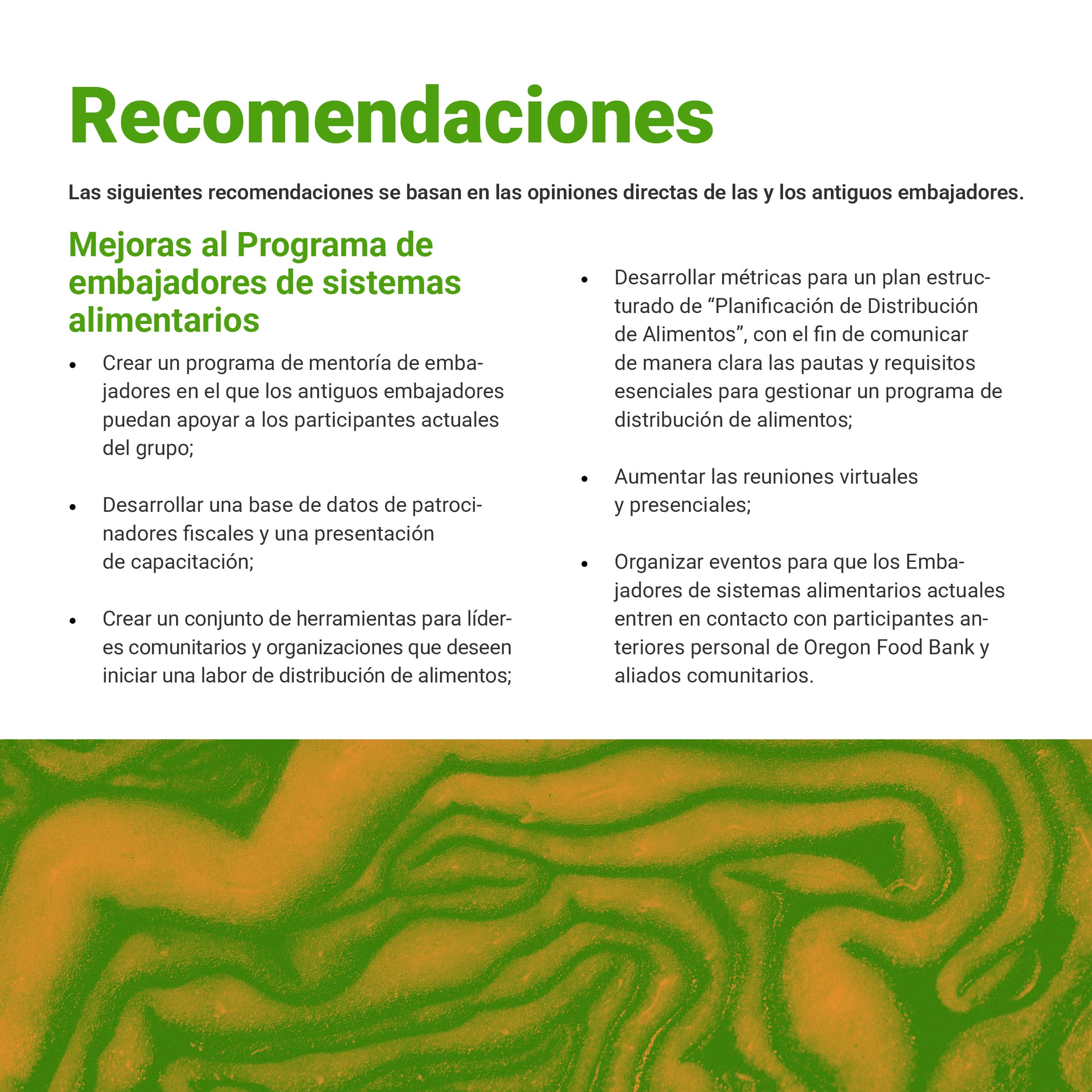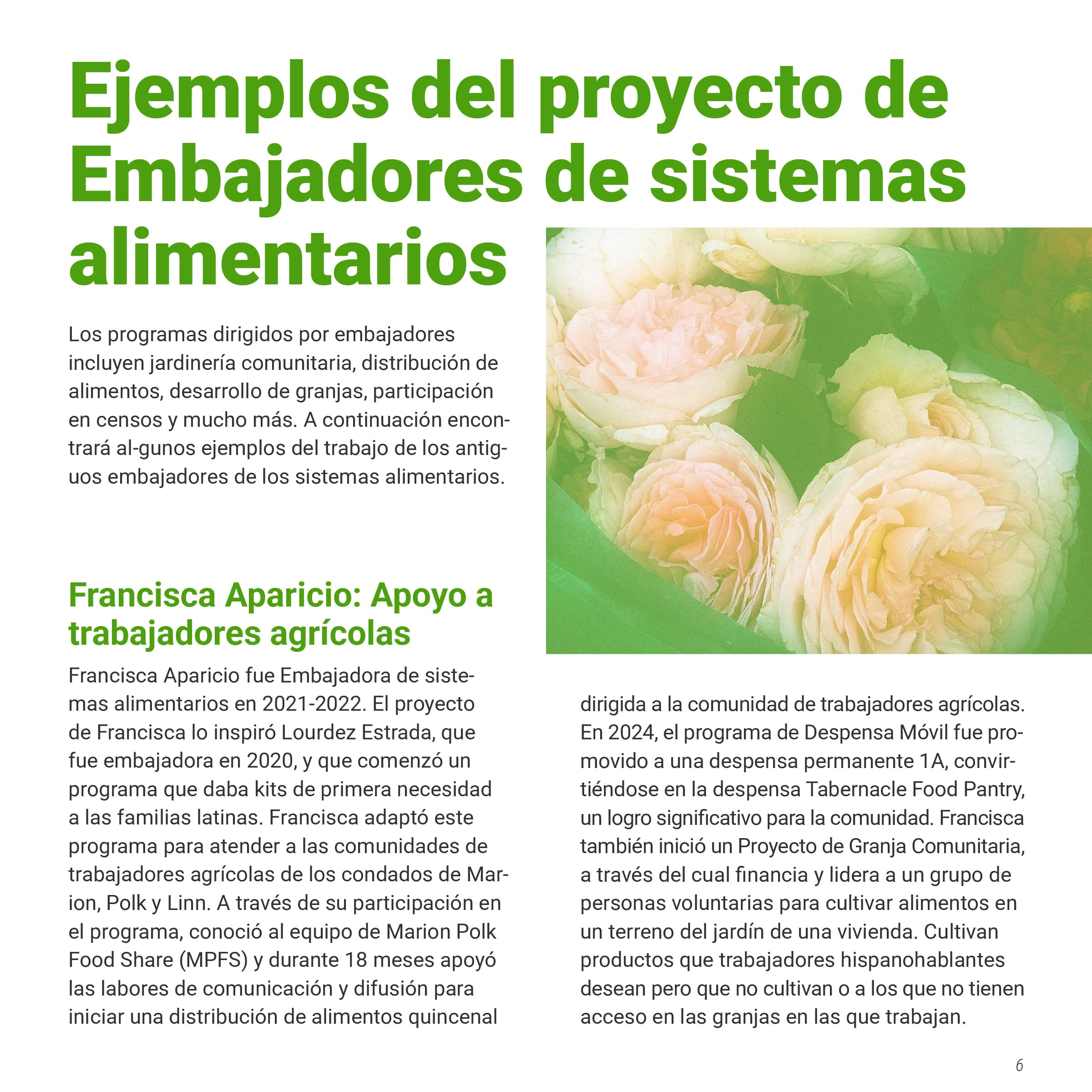 I was tasked with creating a multi-page document of the Oregon Food Bank’s Food Systems Ambassador Program, a program that helped local BIPOC residents become “ambassadors” in their community, teaching them skills to increase food security. This document would showcase both the program's successes and areas for improvement, persuading other nonprofits to implement similar community-serving initiatives. The document needed to be produced in both English and Spanish while maintaining their established brand identity. I was also asked to design graphs and charts to communicate data collected from the ambassador’s feedback.